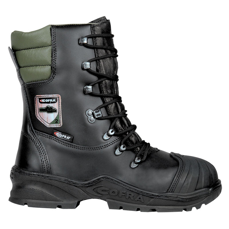 Duboke cipele za drvoseče od vodoodbojne kože sa zaštitom od prosecanja motornom testerom (EN ISO 17249 klasa II, brzina lanca = 24 m/s), postava je od paropropusnog TEXELLE materijala otpornog na abraziju koji brzo upija i oslobađa vlagu. Antistatik, anatomski oblikovana SOFT-BED perforirana tabanica proizvedena je od mekanog, parfimisanog PU i može se izvaditi, prekrivena je tkaninom koja brzo upija i oslobađa vlagu i pruža izolaciju od toplote i hladnoće. Cipele imaju nemetalni APT Plate zaštitni list i čeličnu kapu. Antistatik, protivklizni đon sa apsorberom energije u oblasti pete je prošiven, u celosti proizveden od nitrilne gume otporne na temperature do 300°C (kontakt do 1 min) i otporan je na ulja i naftu. Prednji deo cipele je prekriven slojem nitrilne gume radi dodatne zaštite. Veličina 39-47 EN ISO 20345, EN ISO 17249